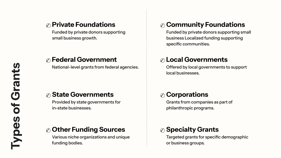Tech companies, retailers, and financial institutions offer grants tied to their sectors (e.g., fintech grants from Visa, retail grants from Target).